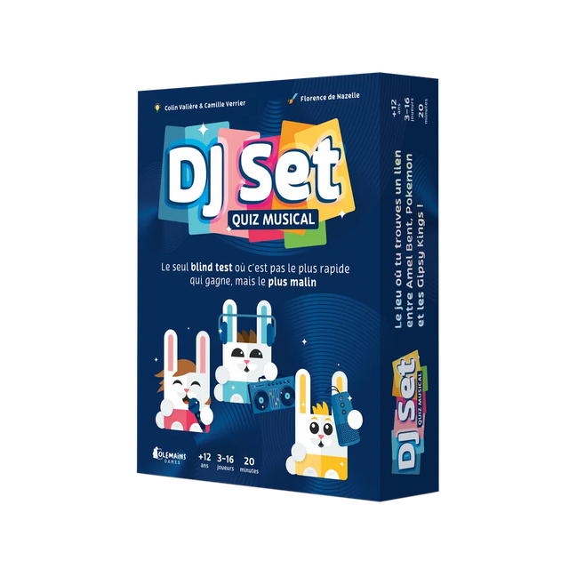 Dans DJ Set, les joueurs scannent un QR code qui renvoie vers une playlist thématique (par exemple Couleurs). En équipe, les joueurs trouvent la couleur évoquée par la musique, que ce soit dans les paroles (Paradis Blanc), le titre (Blue), le groupe (P!nk), ou le thème de la musique (les Simpsons).