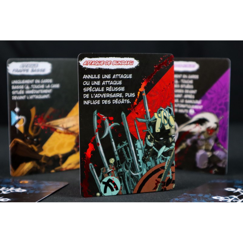 Dans Okko, chaque joueur possède une main de cartes représentant des mouvements, des attaques ou des attaques spéciales sur le champ de bataille. Au début de chaque tour, chaque joueur place deux cartes de sa main face cachée à côté du champ de bataille, après quoi il résout les actions une carte à la fois.