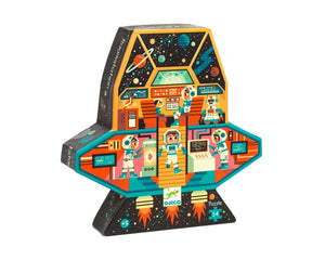 Magnifique puzzle de 54 pièces qui montre une scène spatiale amusante. De plus, le coffret dans lequel il est présenté, une silhouette de fusée spatiale, sera idéale pour la décoration de la chambre d'enfant.