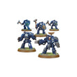 Cette boîte contient cinq Terminators en plastique, avec comme options de quoi faire un Sergeant et équiper chaque Terminator de griffes Lightning ou d'un marteau Thunder et d'un bouclier Storm. Figurines fournies avec des socles ronds Citadel de 40mm