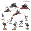 Pratiquez la danse macabre et faites advenir les volontés de Cegorach dans le monde matériel, avec la Patrouille des Arlequins, qui rassemble certaines des meilleures unités de ces Aeldari énigmatiques en une force de frappe vigoureuse et compacte. La boîte renferme six Comédiens d’une Troupe d’Arlequins, l’appareil de transport agile qu’est le Tisseur Stellaire, deux motojets Tisseurs Célestes, un engin d’attaque nommé Tisseur du Néant, et un Solitaire spectaculairement létal, l’un des Comédiens maudits chargé de revêtir le rôle de l’Assoiffée lors des représentations de sa compagnie.